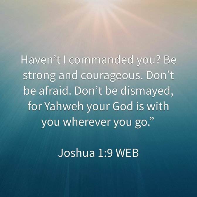 Haven’t I commanded you? Be strong and courageous. Don’t be afraid. Don’t be dismayed, for Yahweh your God is with you wherever you go.”