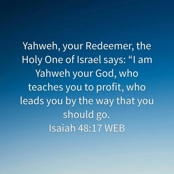 Yahweh, your Redeemer, the Holy One of Israel says: “I am Yahweh your God, who teaches you to profit, who leads you by the way that you should go.